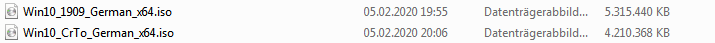 Ausversehen hatte ich auch noch ein reguläres Windows 10 Iso-File (Win10_1909_German_x64.iso)