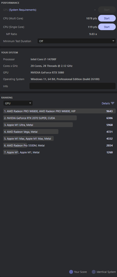 ich bench mal kurz alles durch ich poste dann nochmal ein screenqiller schrieb:Also mein zwar getunter, aber mittlerweile 4 Jahre alter Ryzen 9 5950X kommt auf 1692 Punkte. Ich würde also sagen, da fehlt ordentlich^^.
