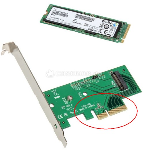 Sehe ich das richtig, daß der PCIe-Adapter für die Samsung-M.2-SSD in den blauen PCIe2.0-Slot von meinem Mainboard gehört, obwohl die Kontaktlänge der Platine deutlich kürzer ist als die des Slots?