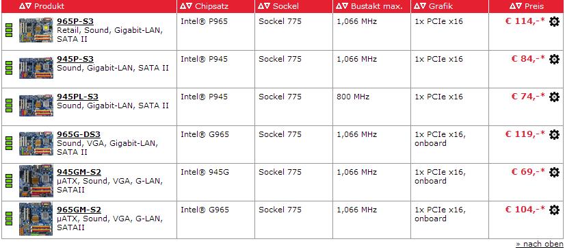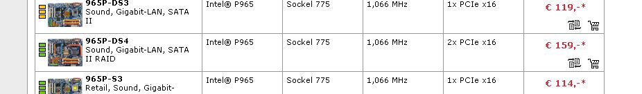 * Intel® G965, Sockel 775, 1.066 MHz, 1x PCIe x16, onboard