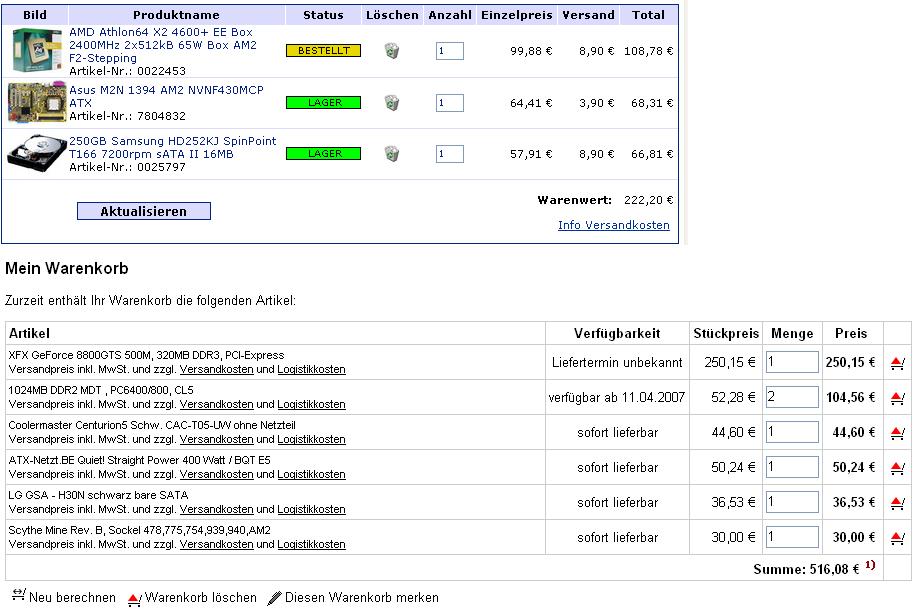 Ram: 2048MB DDR2 Corsair Value-Kit CL 4, PC4300/533 100,86 €