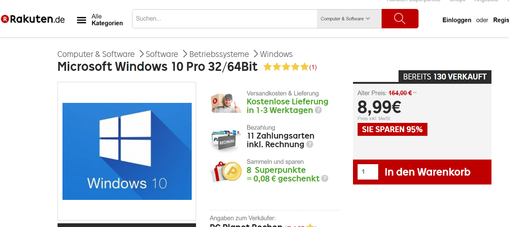 Der Verkäufer ist sehr wahrscheinlich ein Betrüger (in dem Sinne das das angegebene Produkt keine echte freiverkäufliche Windows-Einzellizenz ist.)