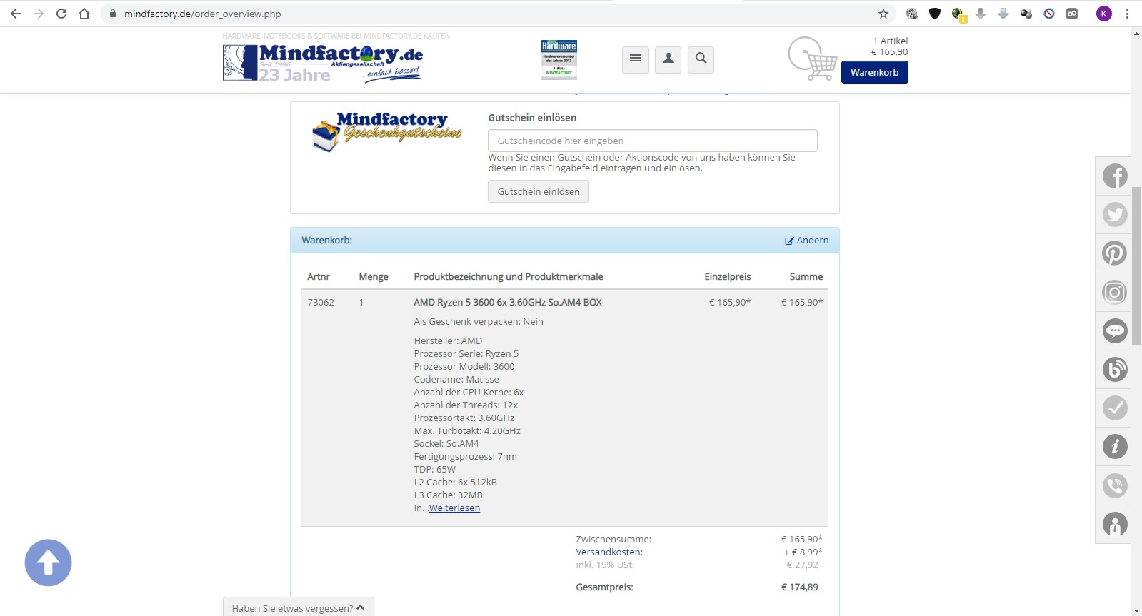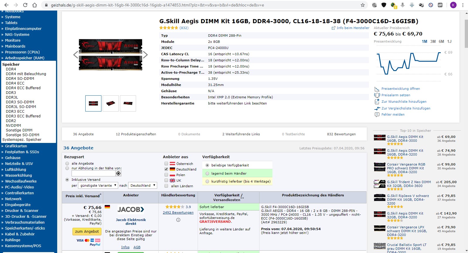 Wollte mein Rechner etwas aufrüsten, sollte insgesamt max. 300,-Euro kosten.