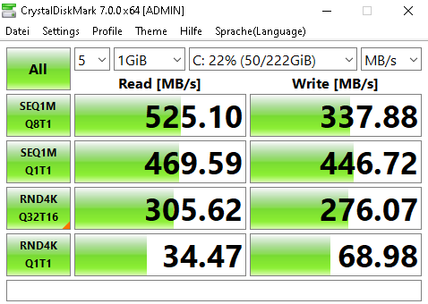Oben wurde auch CrystalDiskMark empfohlen, das würde ich in jedem Fall machen bevor ich Windows neu aufsetze.
