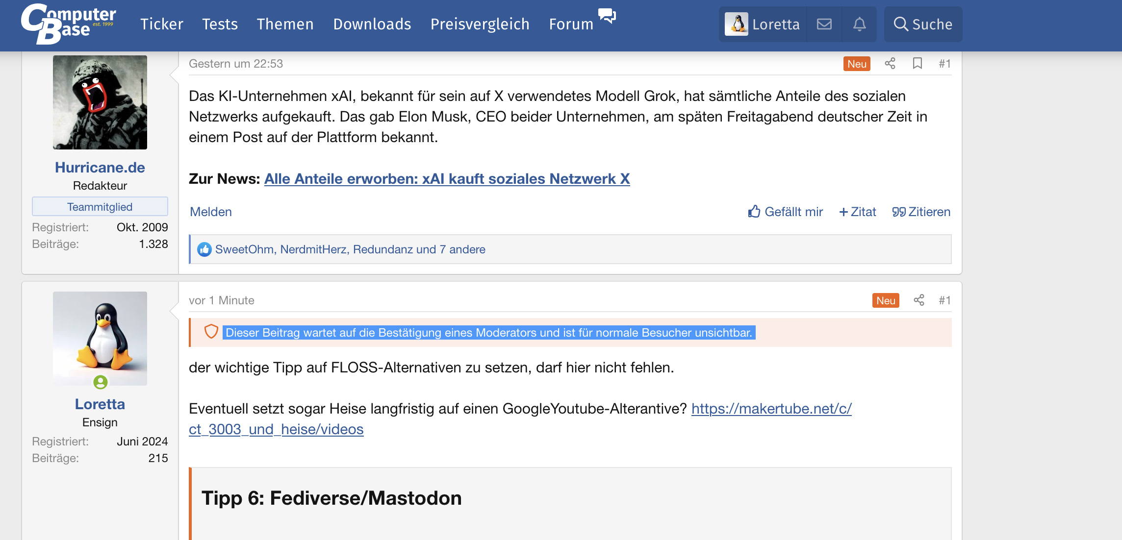 Ist das neu? Bei News: "Dieser Beitrag wartet auf die Bestätigung eines Moderators und ist für normale Besucher unsichtbar"
