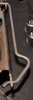 Hast du diese gebogene Halteklammer überhaupt in irgendeiner Art und Weise schon genutzt!? Diese Klammer wird erst wieder unter diese Metallnase geklemmt, nachdem der Metallrahmen richtig auf der CPU aufliegt und auch vorne unter die Schraube greift.