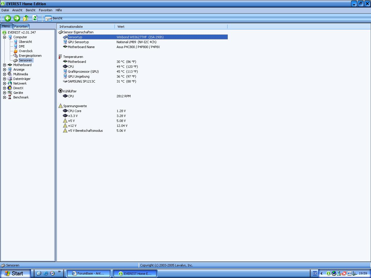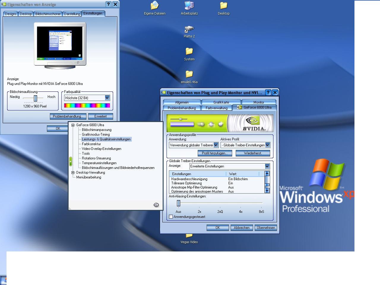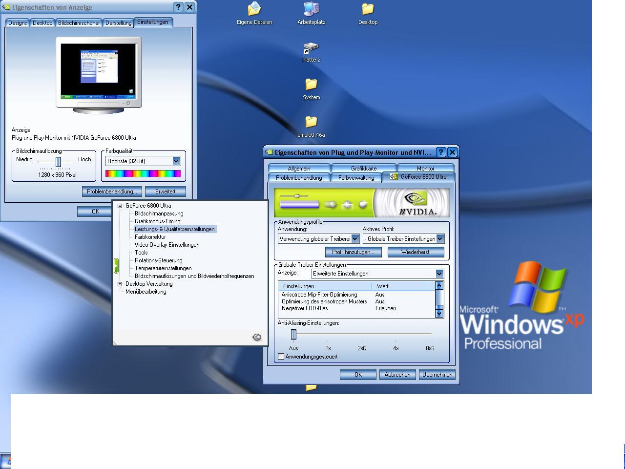 Pentium 4 HT 3.2 GHZ Prescott, 2x 512 MB DDR400 Infineon Ram Dual Channel, Auf nem P4C800E-Deluxe Mainboard, Audigy 2 ZS Soundkarte, Samsung 120 Gig Festplatte SATA,