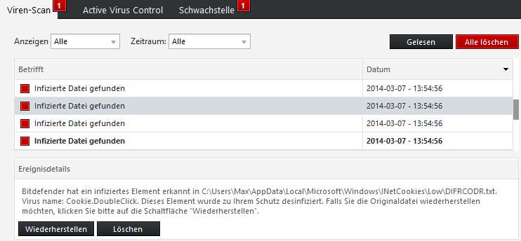 In der letzten Zeit meldet mein Anti-Virus Programm BitDefender ständig, das es eine .txt Datei als Virus erkannt hat.