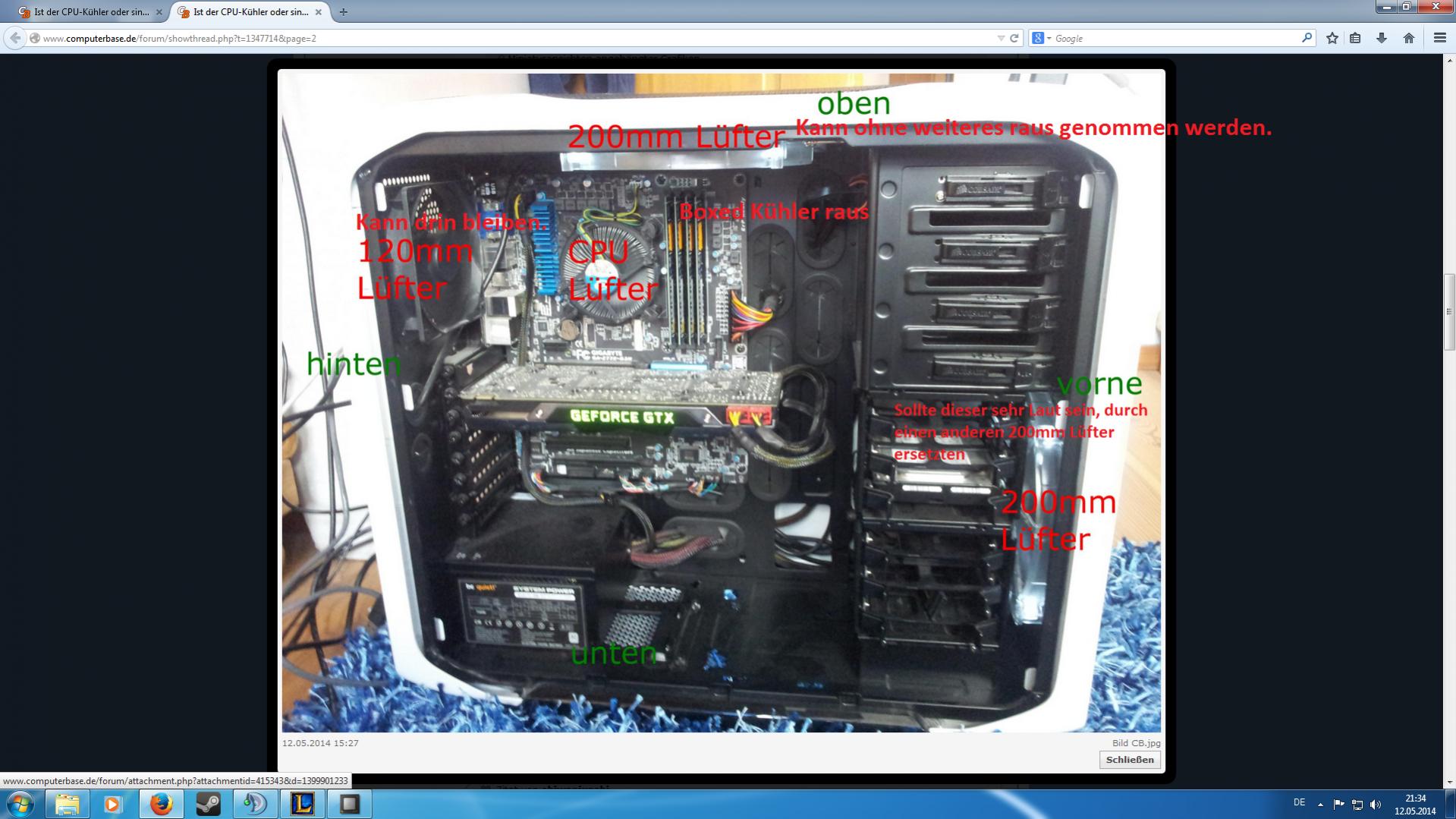 200 mm Lüfter Oben : würde ich weg lassen oder durch einen von meinen oben genannten ersetzten