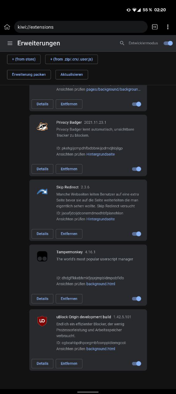 Ich dachte ich habe den perfekten Androidbrowser gefunden da er normale Chrome Erweiterungen unterstützt und schnell ist.