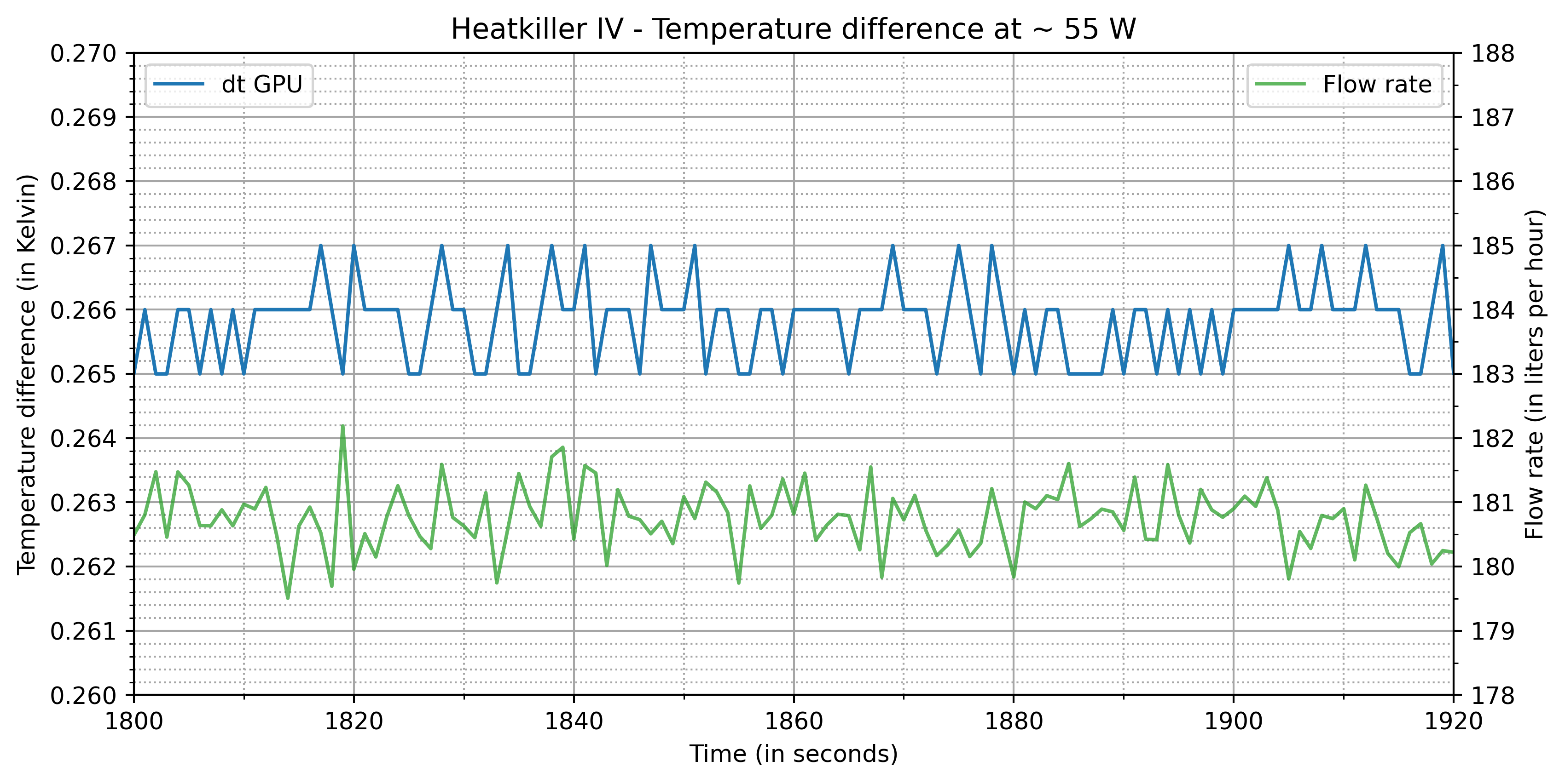 Hätte man eine Zieltemperatur bei der CPU/GPU gesetzt und nicht am wärmsten Punkt des Kreislaufes, würde der Unterschied im Durchfluss weniger Unterschied für die abführbaren Watt machen.