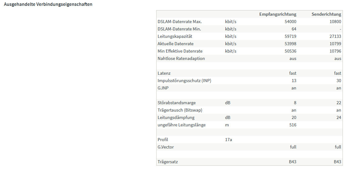 2. Screenshot von den DSL-Informationen und dem Spektrum machen (für spätere Vergleiche).