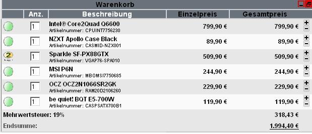 habe mich jetzt entschlossen mir ein neues system zu bauen, und wollte mal fragen ob die zusammenstellung so ok ist und alles zueinander passt, besonder vom speicher und netzteil her.