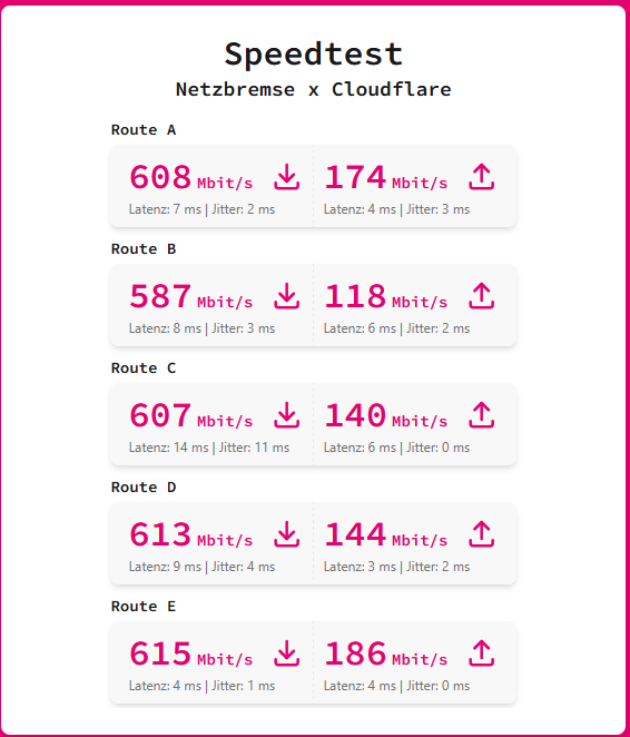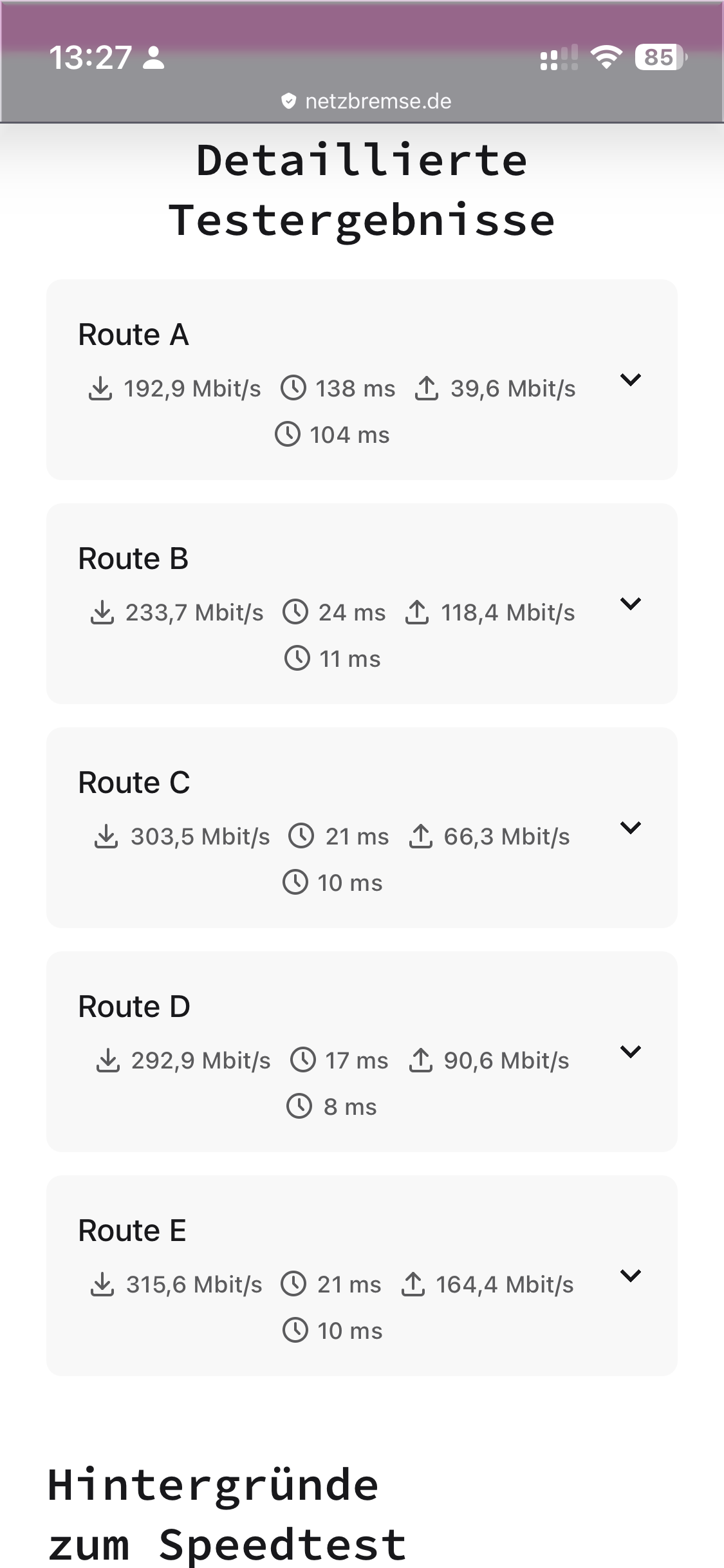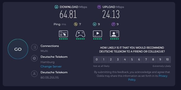 Der Unterschied ist schon deutlich spürbar. https://satisfactory-calculator.com/en/interactive-map wird jetzt instant geladen, zuvor durfte ich mir ansehen, wie sich die Map von Kachel und Kachel aufbaut. https://www.flugzeugbilder.de auch kein Problem. Beim Cloudflare Speedtest werde ich jetzt auch mit einem Server verbunden, der viel näher ist als vorher.
