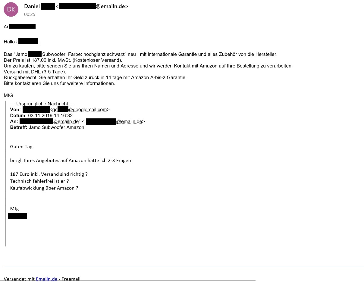 Daraufhin folgte diese Mail und ich wollte nun mit euch mal Rücksprache halten bevor ich etwas mache.