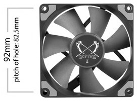 Das ist übrigens richtig, weil die Größenangabe sich auf die Kantenlänge bezieht. Bei einem 92mm-Lüfter haben die Schrauben einen Abstand von 82,5mm.