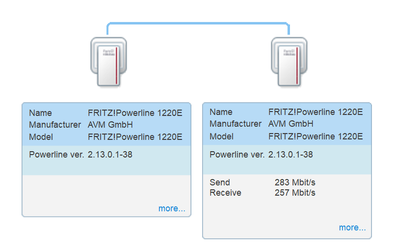 Die 1220E soll mit bis zu 1.200 MBit/s verbinden, bei mir sind es konkret dann noch 283 / 257 Mbits