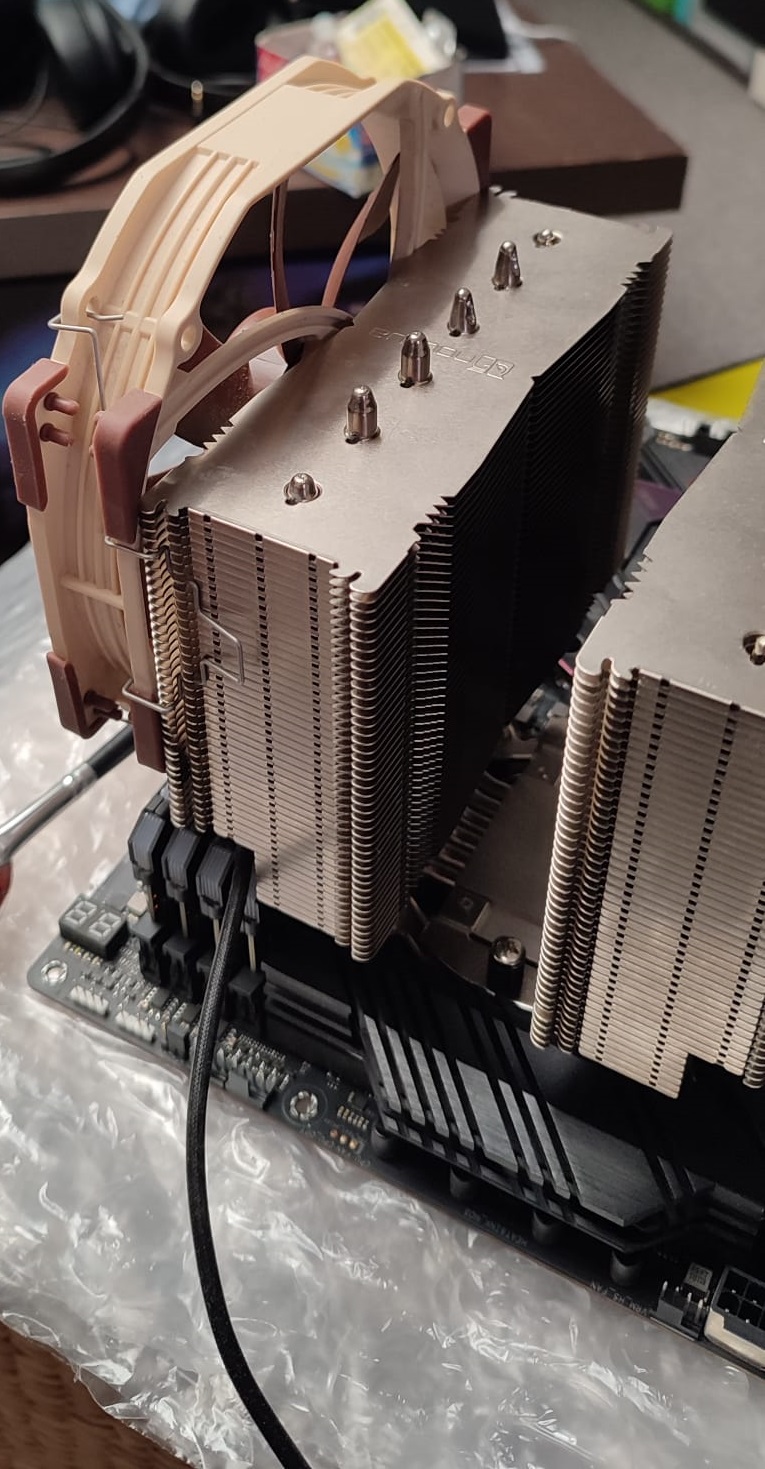 Mit dieser Konstellation kann ich beim Noctua NH-D15, durch den verbauten RAM, den einen Lüfter nicht so auf dem Kühler anbringen wie ich es gerne hätte. Also muss er verschoben angebracht werden. Siehe Bild, falls man nicht richtig versteht, was ich aussagen möchte. Auf dem Bild könnte man denken, da ist noch Platz nach unten, aber nein, der Lüfter sitzt ein direkt über dem RAM.