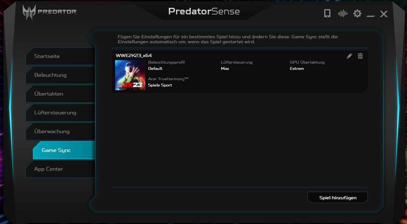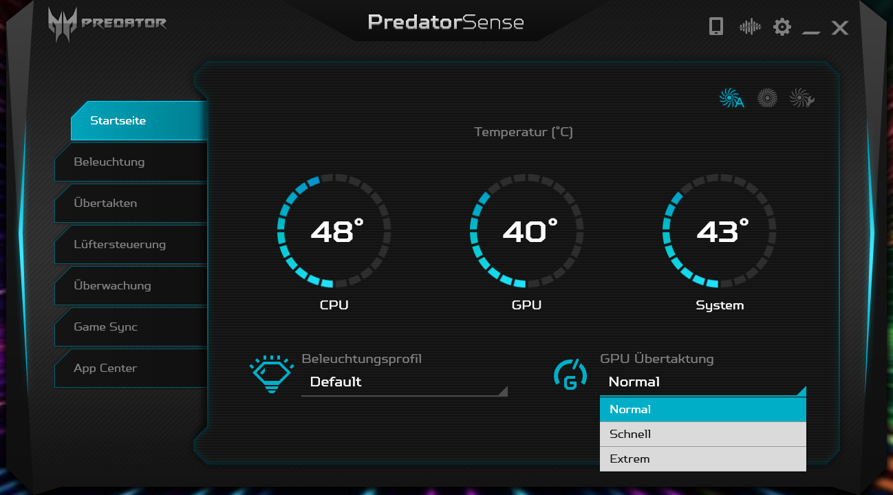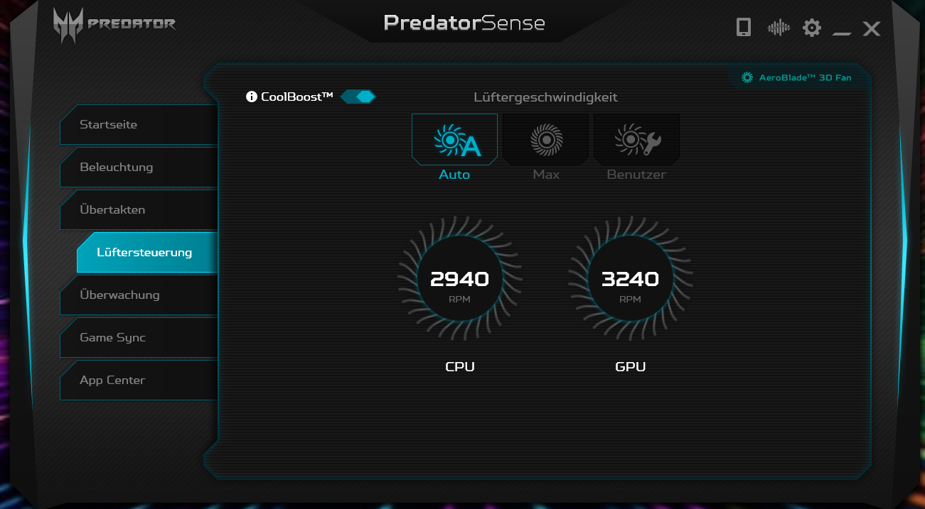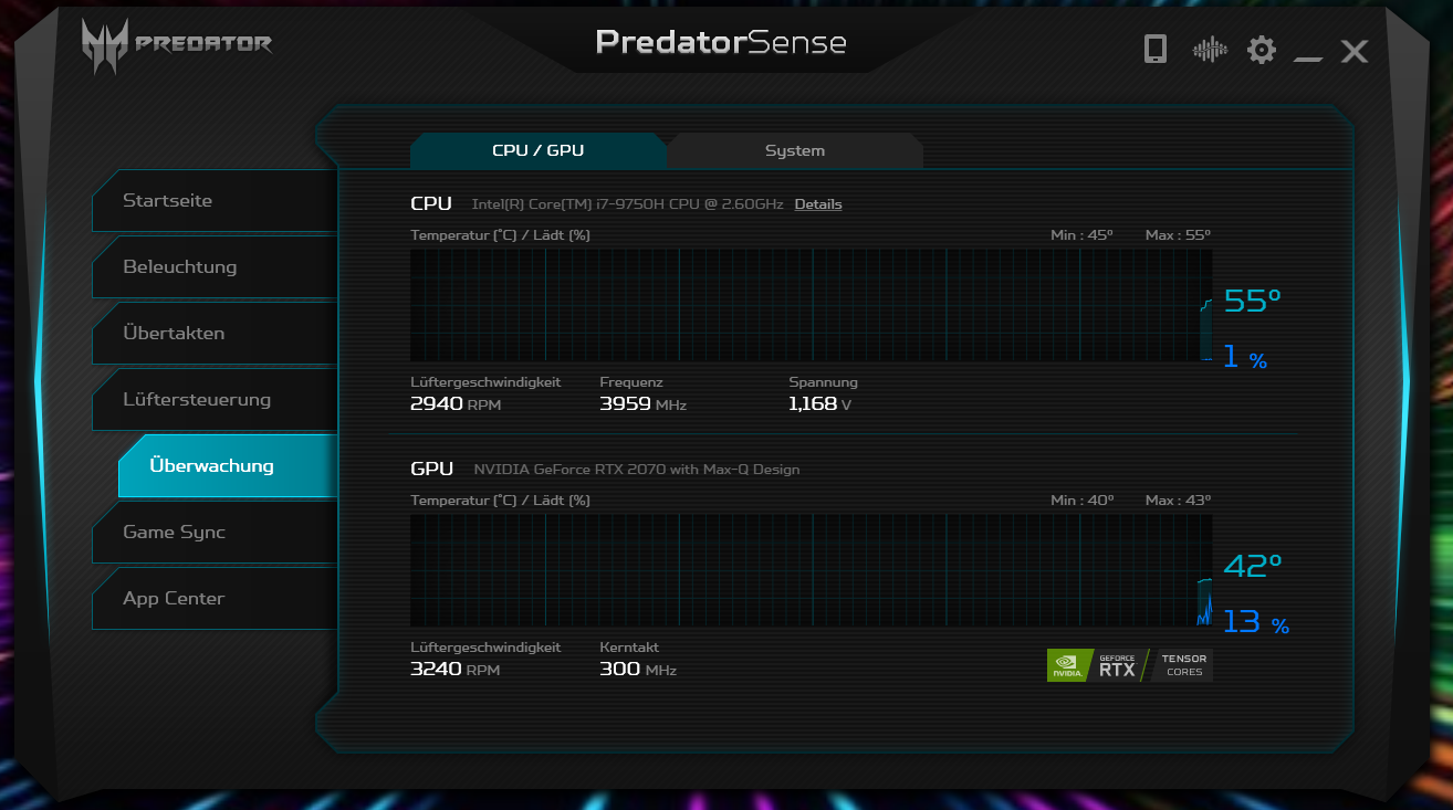 Also es gibt eine Software auf dem Notebook "PredatorSense" mit der man zum einen den Lüfter koordinieren und auch die GPU übertakten kann......aber die GPU und der Arbeitsspeicher sind ja nicht das gleiche (es sei denn ich irre mich da).......Ich kann darin zudem die Beleuchtung der Tastatur und auch ein "Game Sync" einstellen.