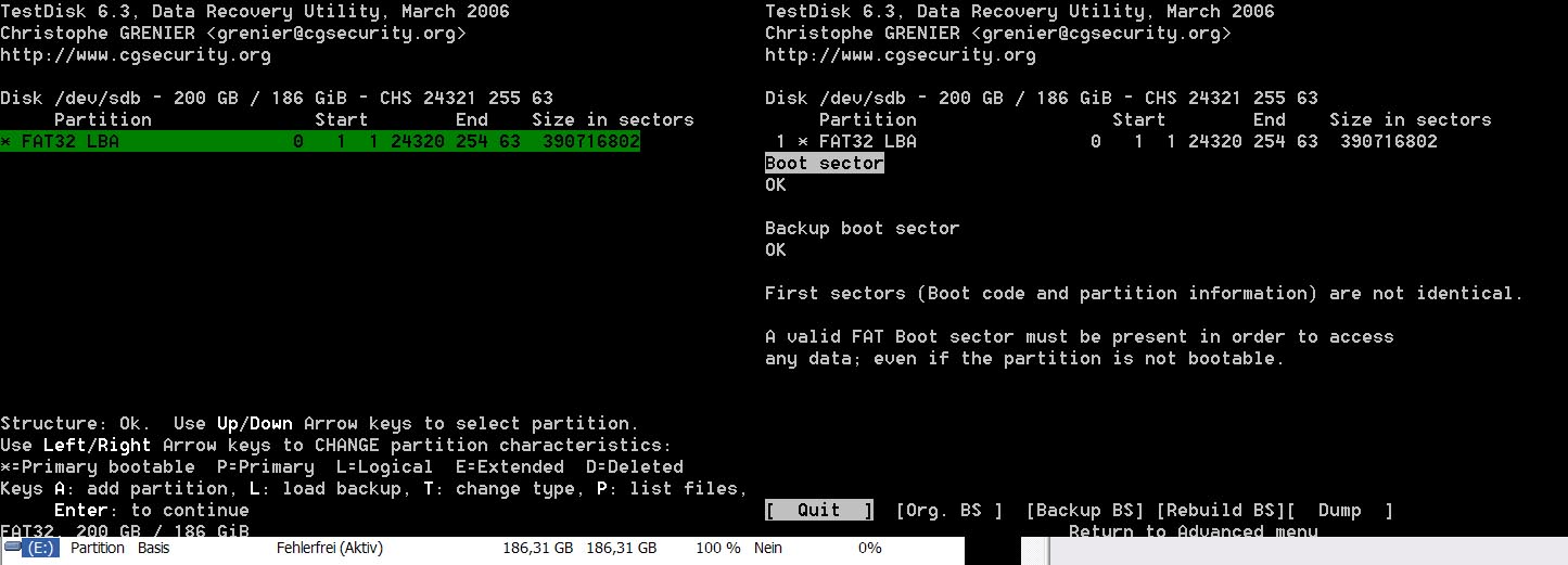 Achja, das mit dem identical boot sector hab ich schon etliche male behoben,