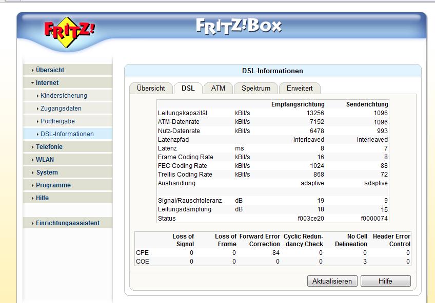 Das Modem ist nur mit 6-Mbit synchronisiert, obwohl die Leitung erheblich mehr hergibt.