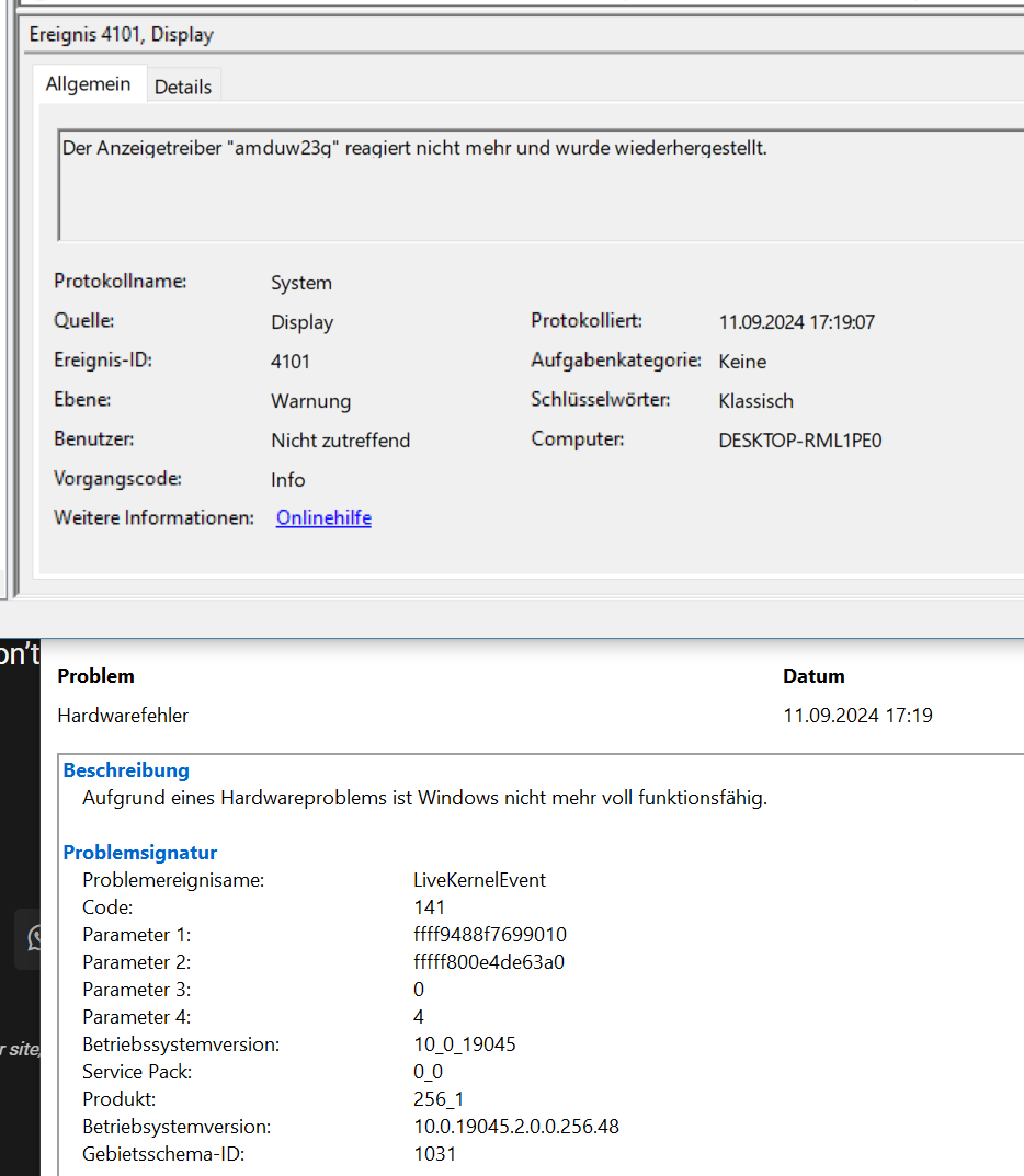 3) der 8600G schmiert ab- und zu ab (friert ein, anschließend schwarzer Screen und nach paar sec gehts wieder) mit Fehlermeldung "Der Anzeigetreiber "amduw23g" reagiert nicht mehr und wurde wiederhergestellt." in der System Ereignisanzeige.