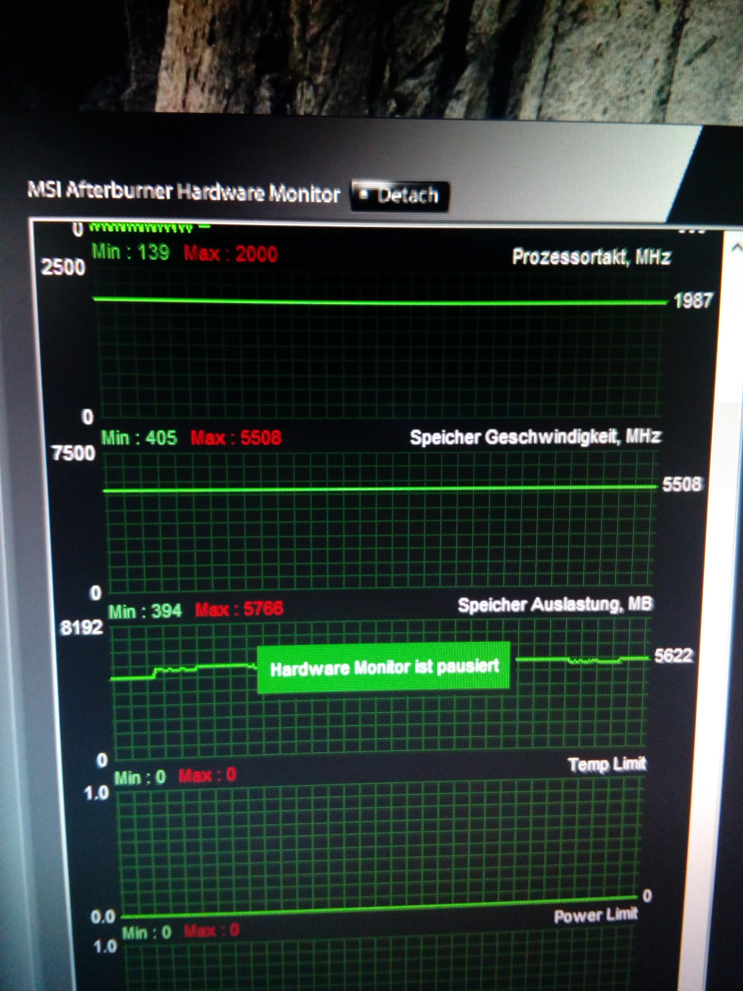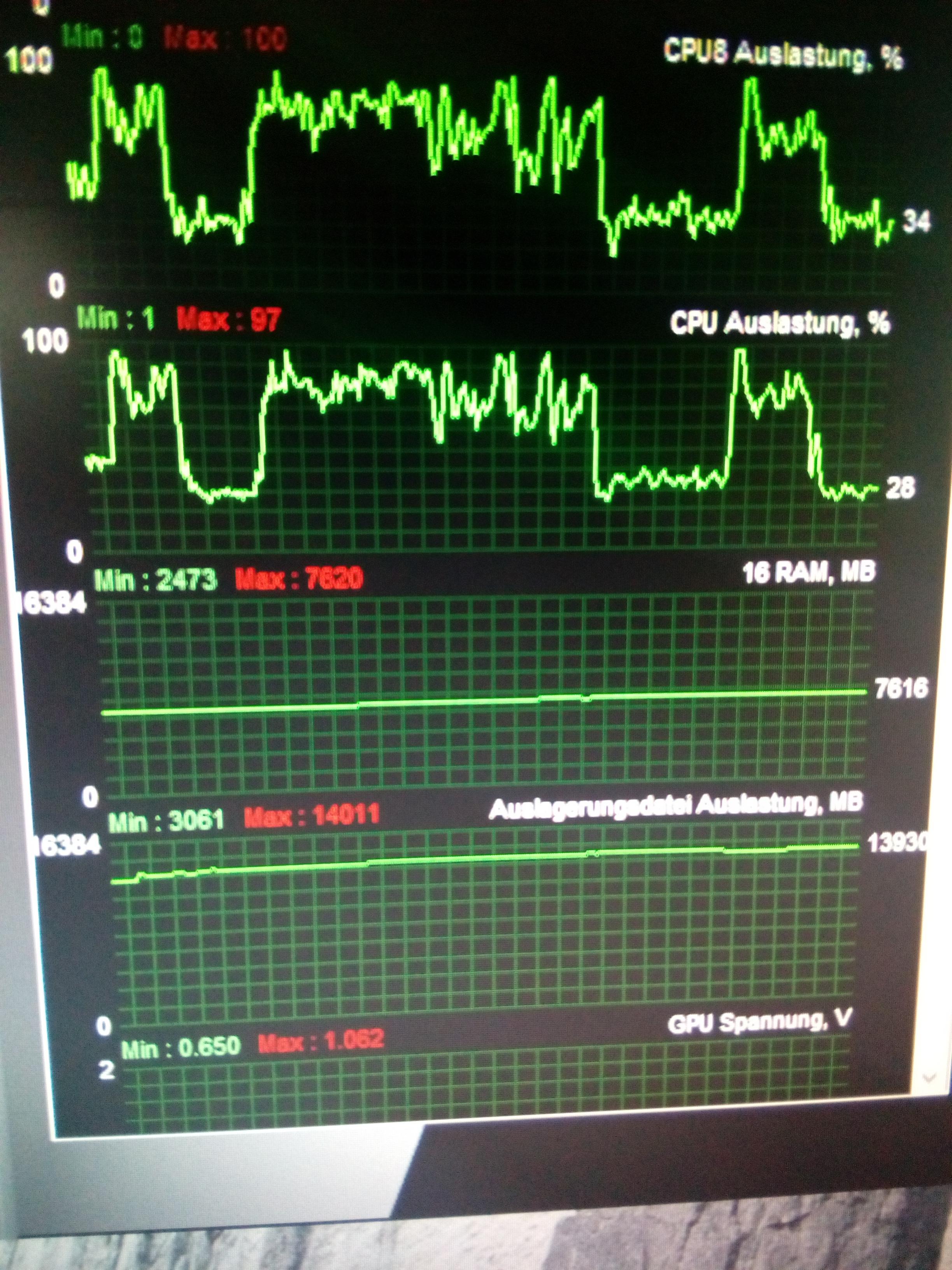 Problem: ich habe seit einiger seit immer den gleichen ruckler plötzlich habe ich mini mal ein standbild gpu auslastung geht auf ungefähr 10% power geht auch runter der takt der karte nicht und speichertakt auch nicht cpu takt verändert sich nicht ich habe schon vieles versucht windows neuinstalieren treiber neuinstalieren graka gewechselt von 1080 auf ti Mainboard gewechselt ram gewechselt verschiedene Gsync und vsync optionen nichts hat geholfen ich habe viel im internet geschaut und auch themen dazu gefunden nur hat nichts davon bei mir geholfen auf dem Bilder habe ich einen frame drop erwicht man sieht das sehr deutlich bei gpu auslastung und bei den fps ihr hier im forum seit meine letzte hofnung ich habe diese Probleme fast in jeden spiel mal schlimmer mal auch garnicht ich hatte auch tage wo nichts geruckelt hat ist alles sehr komisch ich habe schon diverse Hardware getauscht Mainboard ram ssd Grafikkarte leider immer ohne erfolg wen mir ein experte bestätigen könnte das das Netzteil hinüber ist wäre das echt nett hier msi ab fotos von einem ruckler
