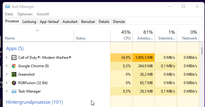 So ich habe jetzt mal ein paar Bilder von der Auslastung gemacht, sowie von meinen SPD und während ich warzone spiele, wie man sehen kann habe ich auf einem Teil der Karte nur 68 FPS auf manch anderen Teilen 80-90 FPS... Vielleicht habt ihr ja paar Tipps die ich anwenden kann..