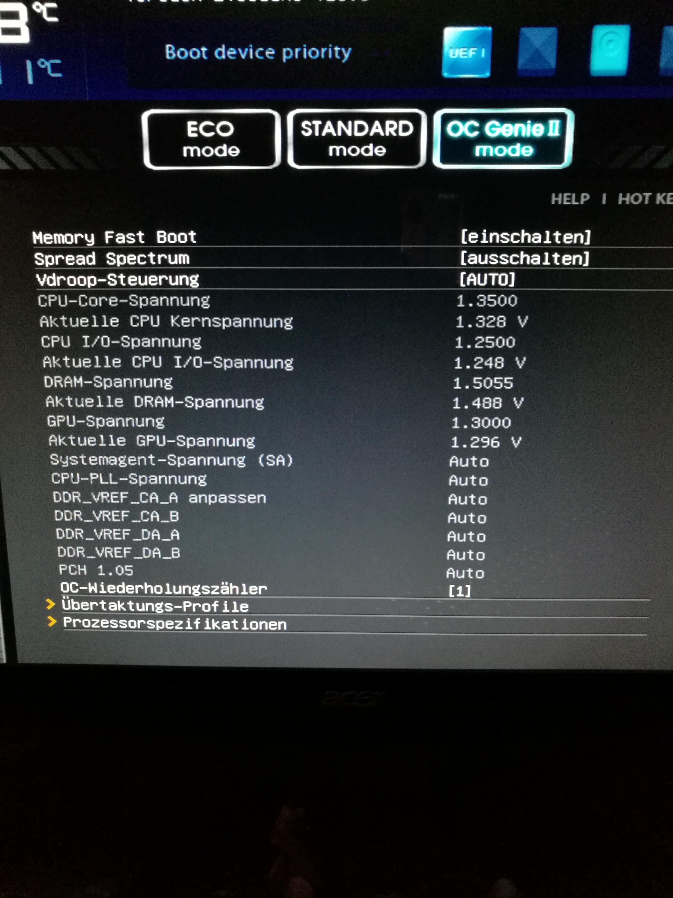 Ich habe mal auf diesen Overclock Knopf aufm Bord gedrückt und er war dann auch übertaktet, mittlerweile nach langer Zeit, vielen verschiedenen Probleme und Windows Neuinstalltion, weiß ich nun nicht mehr, ob diese Übertaktung noch aktiv ist.