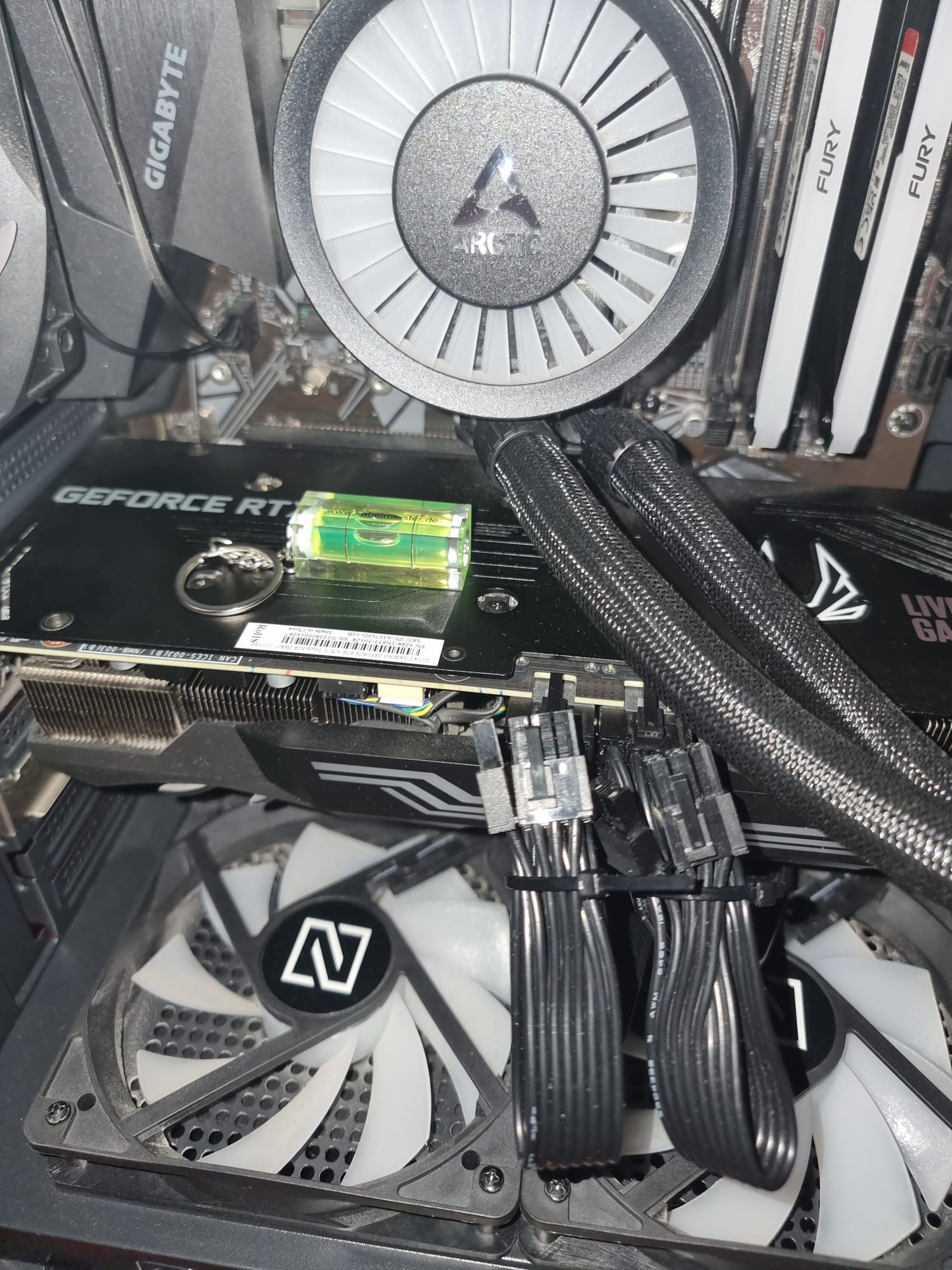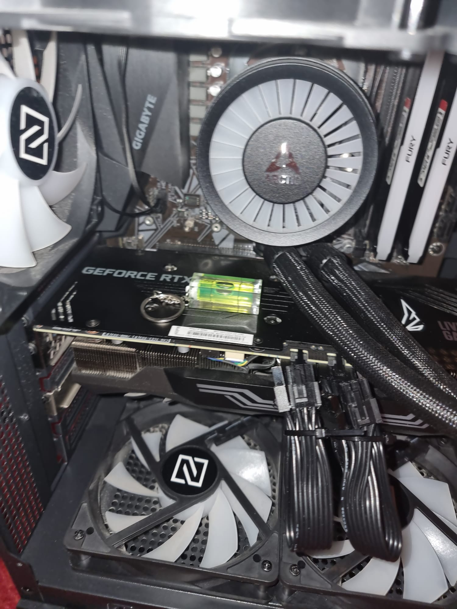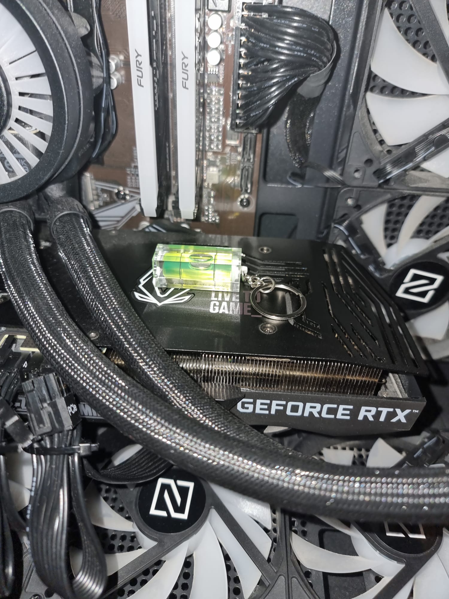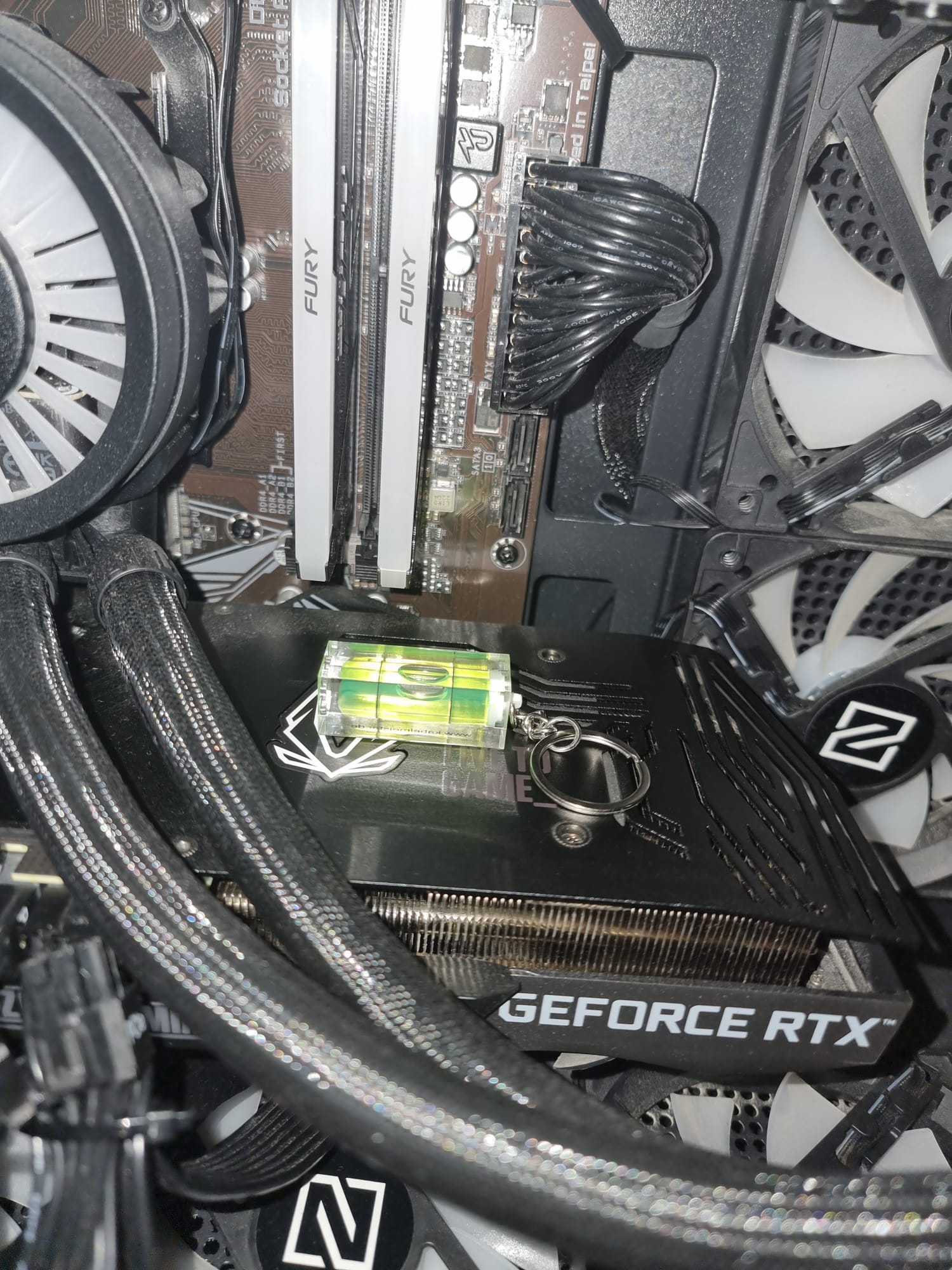 Seitden 02.09.2025 habe ich ein GPU Ständer. Und ohne GPU Ständer neigte meine RTX3070 TI bisschen nach unten leicht. Nun ist die gerade und neigt nicht mehr nach unten und drückt auch nicht nach oben meine RTX3070 TI. Ist Anhand der Bildern es wirklich gerade ? Heute kam die Wasserwaage wollte die mal messen die Grafikkarte, ob es wirklich 100% gerade ist. Die Wasserwaage war kurz auf der Grafikkarte drauf gelegt und ist leicht, kann nicht so schnell was passieren oder ?