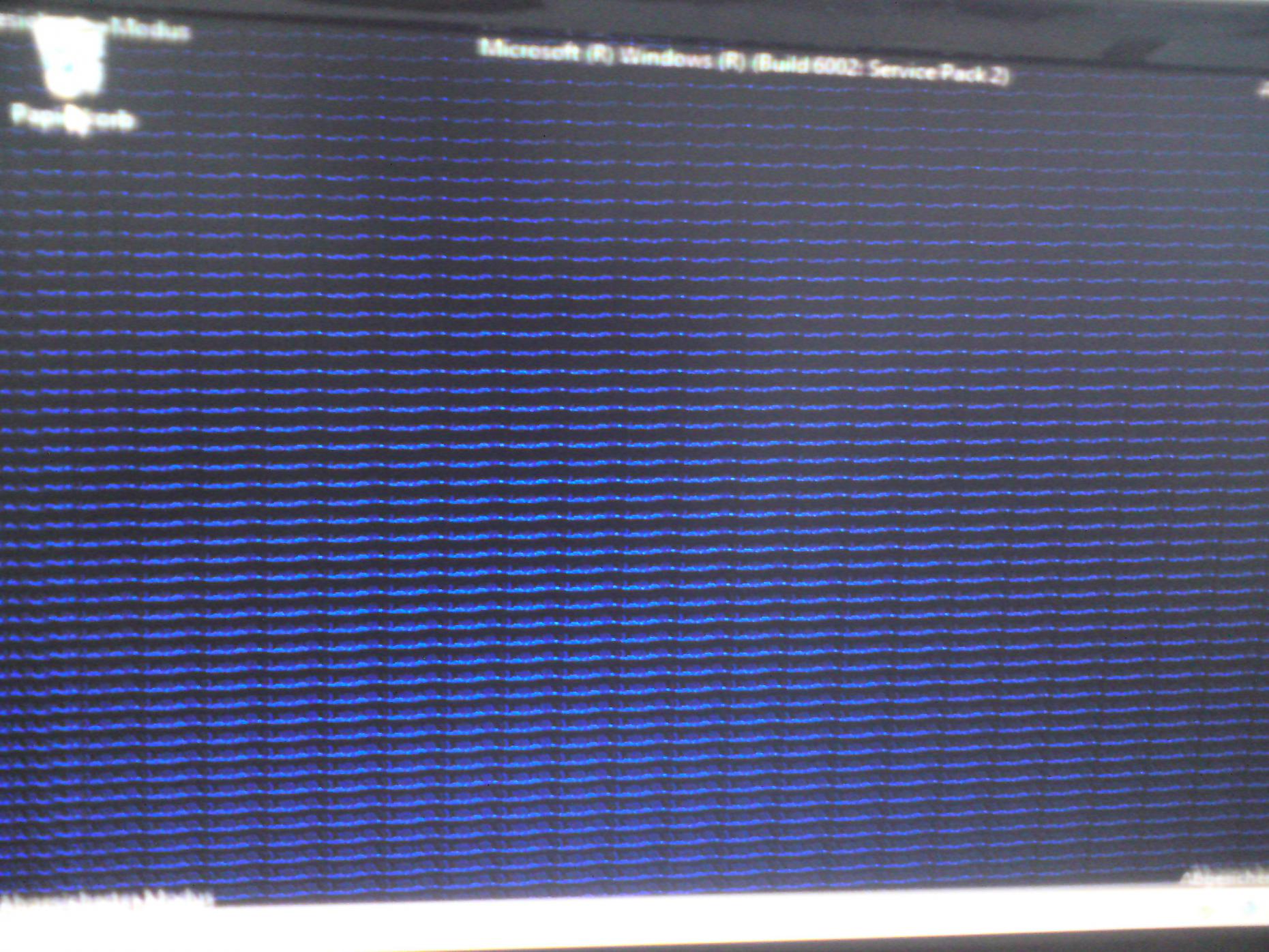 Schon im Bootmenü sind diese Störungen(siehe Anhang), dazu kommen auch ein paar kryptische Symbole und vertikale Streifen.