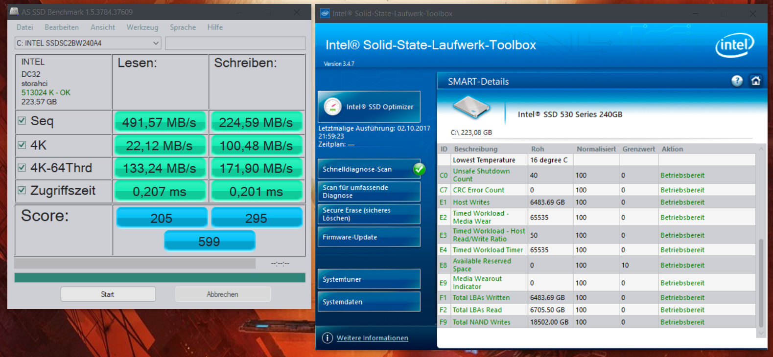 Besonders das starten des Firefox ging früher immer "sofort" sobald man auf das Icon gedrückt hatte. Jetzt dauert es bestimmt 3 Sekunden. Auch andere Vorgänge kommen mir ausgebremst vor... Mit dem Intel Tool mache ich regelmäßig ein TRIM, das aber nichts bringt...