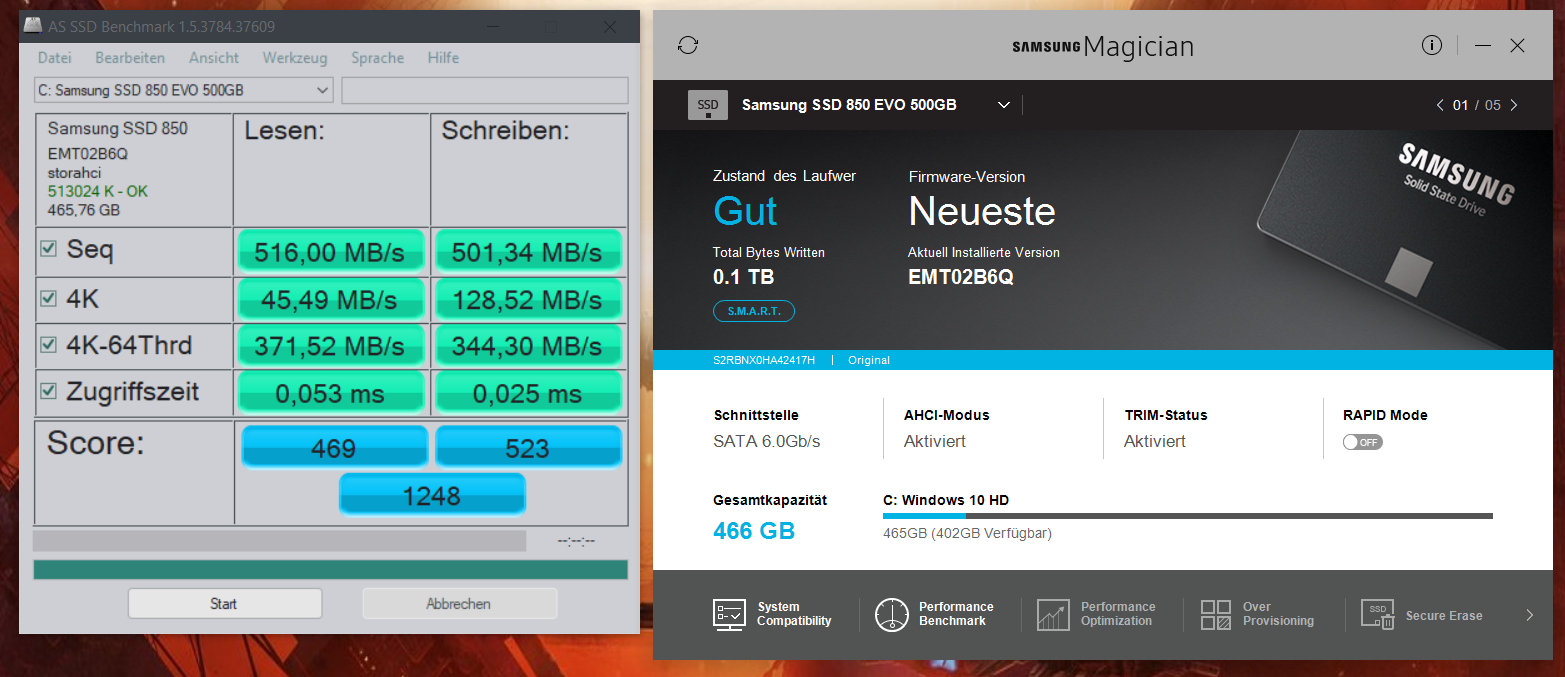 Der AS-SSD Benschmark bestätigt mir auch ein sehr langsames schreiben... Ich glaube vor zwei Jahren waren Lesen und schreiben bei knapp 500mb/s. Besonders das schreiben hat massiv an performace verloren, kann das sein?