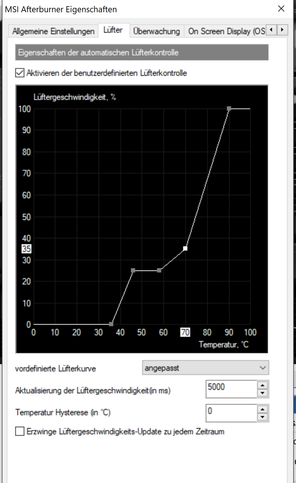 Nur muss das auch kühler gehen. Denn bei 80 Grad drehen die sonst unhörbaren Lüfter sowas von auf, um eben genau diese Temp zu halten. Das wurde durch den Vorbesitzer hier mit einer Bios-Mod gemacht. Bin auch sehr zufrieden damit was die Lautstärke im Idle betrifft. Denn sie ist unhörbar. Also sie ist bis 80 Grad unhörbar. Dann heulen die Lüfter hoch (drehen natürlich vorher auch schon
