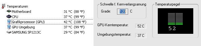 zum Teil zeigen verschiedene Tool temperaturen über 60ig grad an, wenn ich zum beispiel Star Wars Knights of Old Rebublic mit voller ^Grafikleistung laufen lasse.