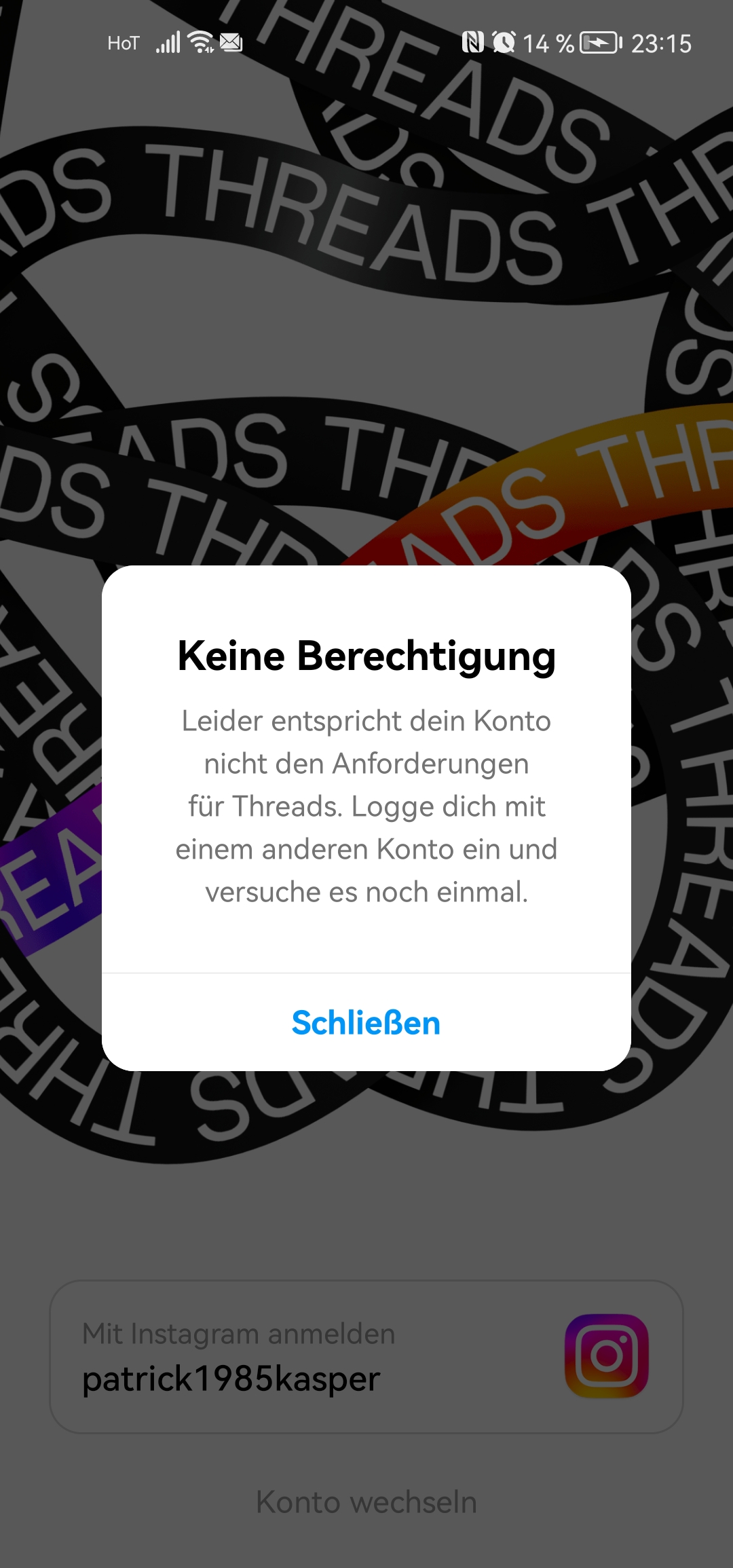 Ich tät das gern ausprobieren, die App hab ich schon installiert, nur einloggen kann ich mich nicht. Es ist fraglich ob bei der Europäischen Gesetzgebung jemals Threads in der EU kommt.
