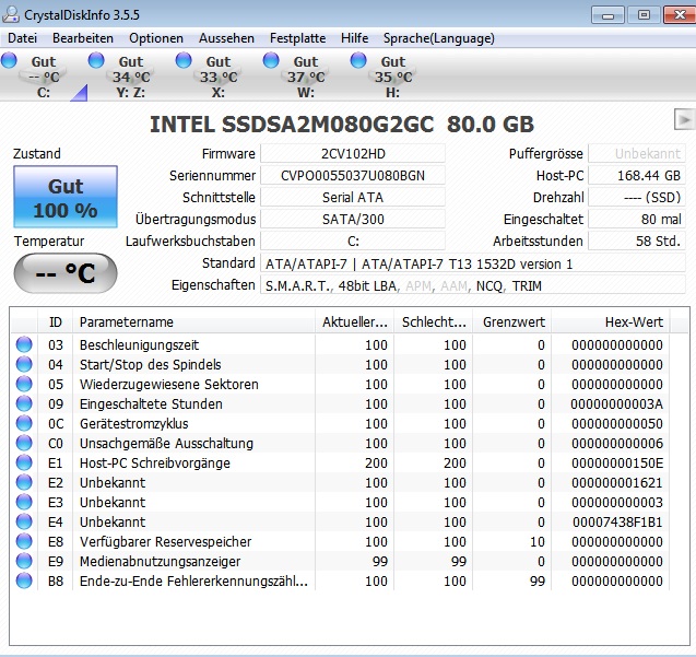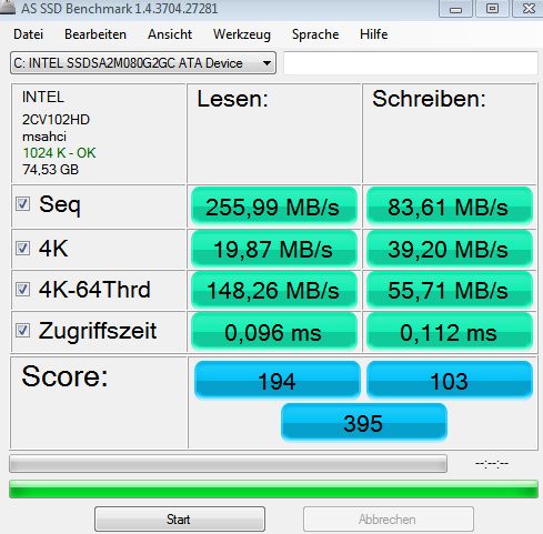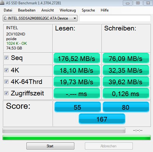Ein offene Frage bleibt allerdings, ob die Platte im AHCI Modus läuft?