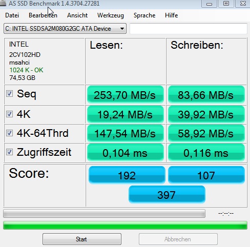 Bei meinen Komponenten ist nun auch die erwähnte SSD. Da ich dummerweise erst WIN7 x64 installiert habe und erst danach auf die Seite von PC-Experience gestoßen bin, bin ich mir nicht sicher, ob ich alles richtig gemacht habe?!