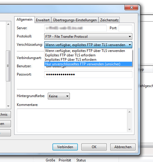 ich soll auf den Webspace eines Bekannten etwas hoch- und runterladen. Es geht aber nur unverschlüsselt, siehe Anhang.
