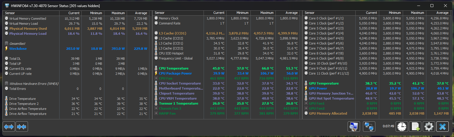 Sehr schön ist dabei, dass auch die Temperaturen aller Komponenten kontinuierlich in einem Graphen aufgezeichnet werden und so im Nachgang betrachtet werden können (mit Zeitstempel):