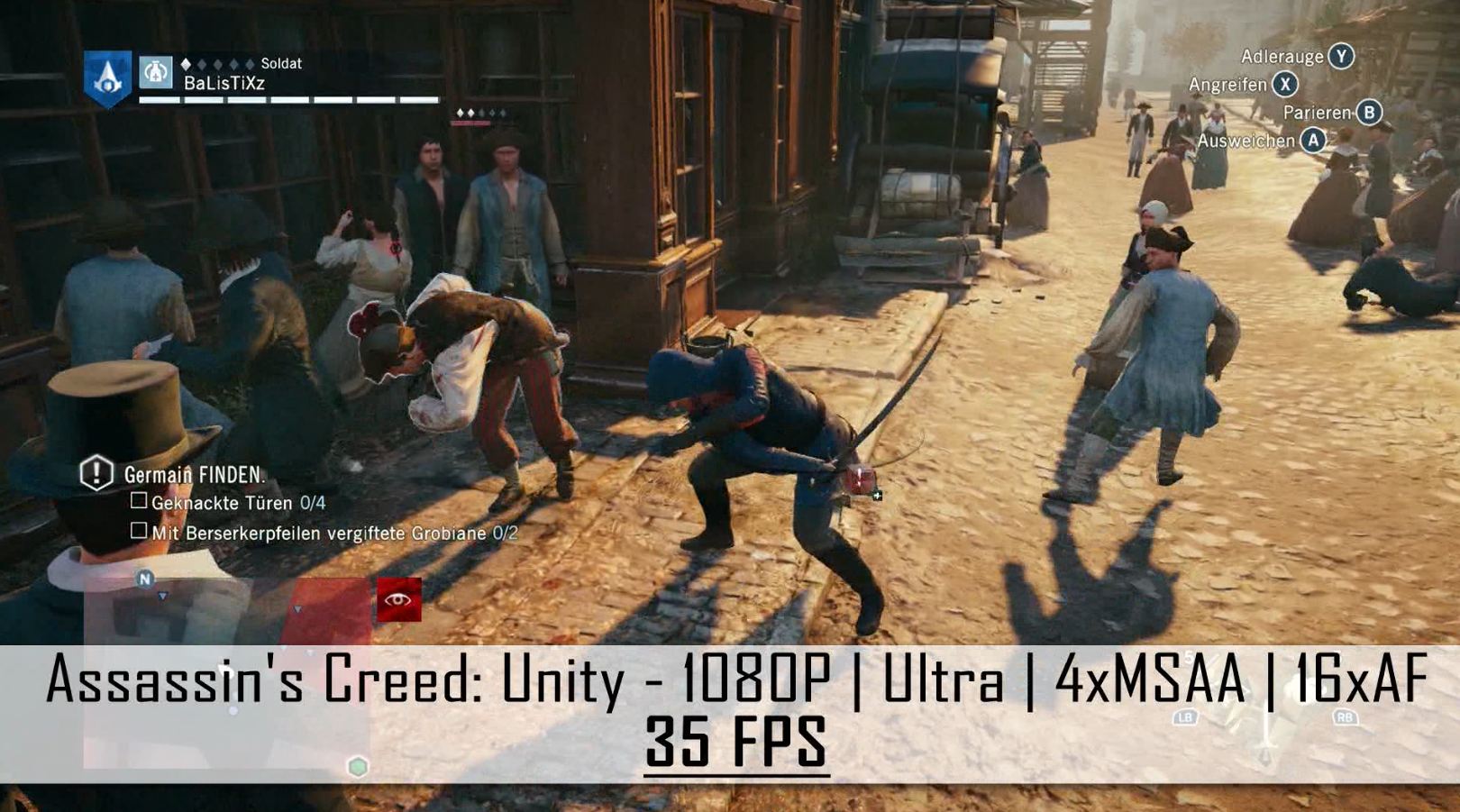In Assassins Creed Unity, einem absoluten Grafikkracher 2014, erreiche ich durchschnittlich 35 FPS. 35FPS sind jetzt nicht so viel, aber mit 35 FPS ist Unity, wenn es denn mal nicht kaputt gepatcht wurde problemlos spielbar.
