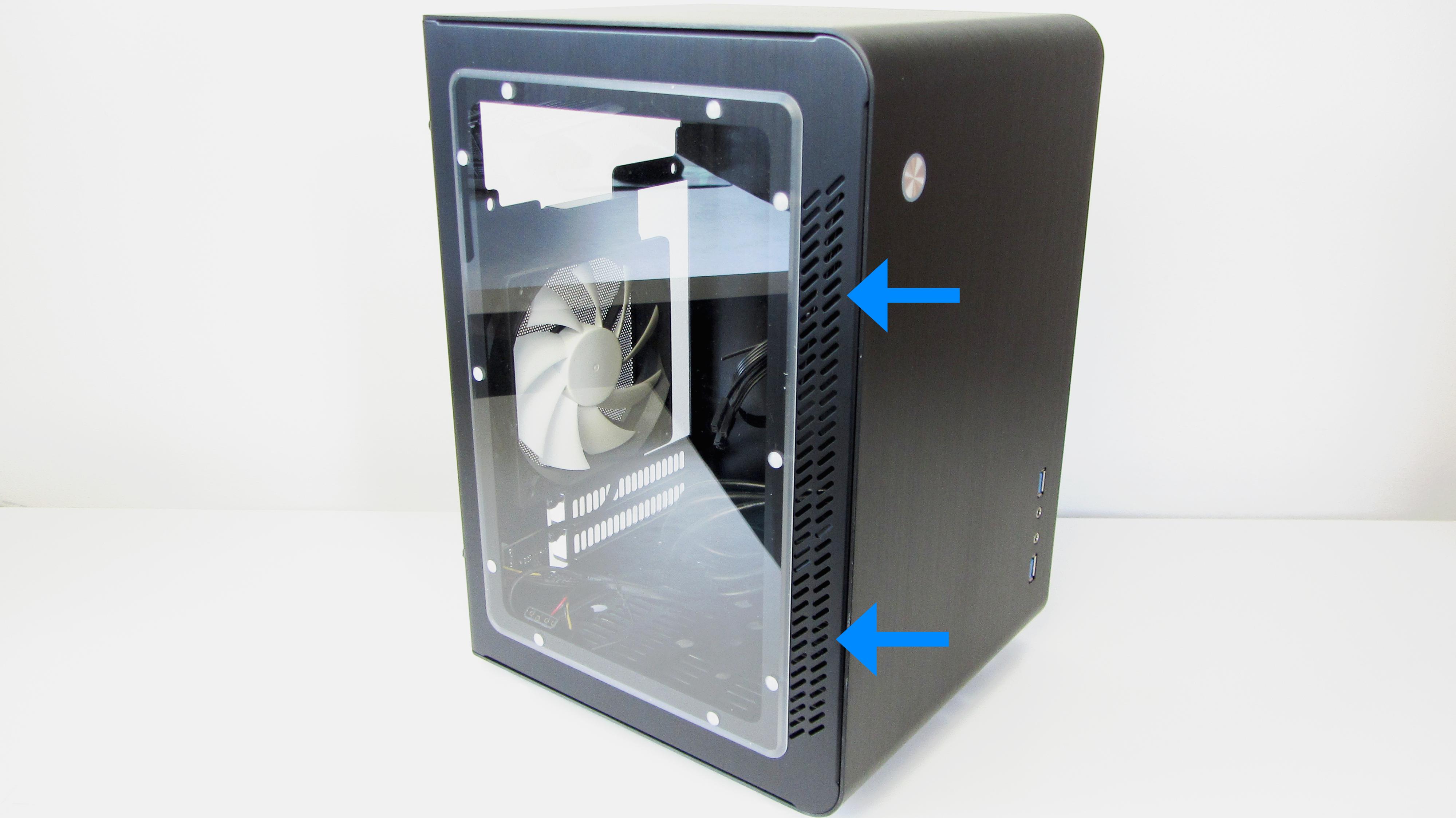 Zusätzlich gelangt kühle Luft über die Lüftungslöcher an den Seitenteilen in das Gehäuse.