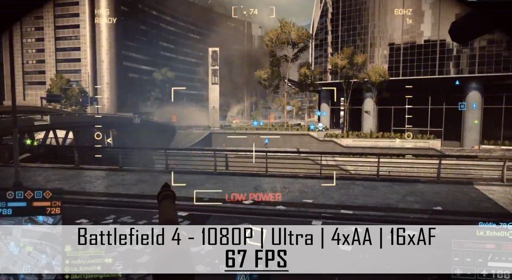 In Battlefield 4, dem Vorreiter aller Ego Shooter, erziele ich 67 FPS. Bei extrem aktionlastigen Sequenzen, mit Explosionen oder ähnlichem, sinken die FPS auf 60, aber selbst dann ist Battlefield 4 kein Problem.