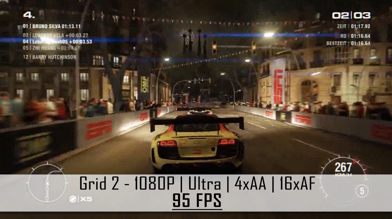 In Grid 2 erziele ich den höchsten FPS Wert aller getesteten Spiele, von 95 FPS.