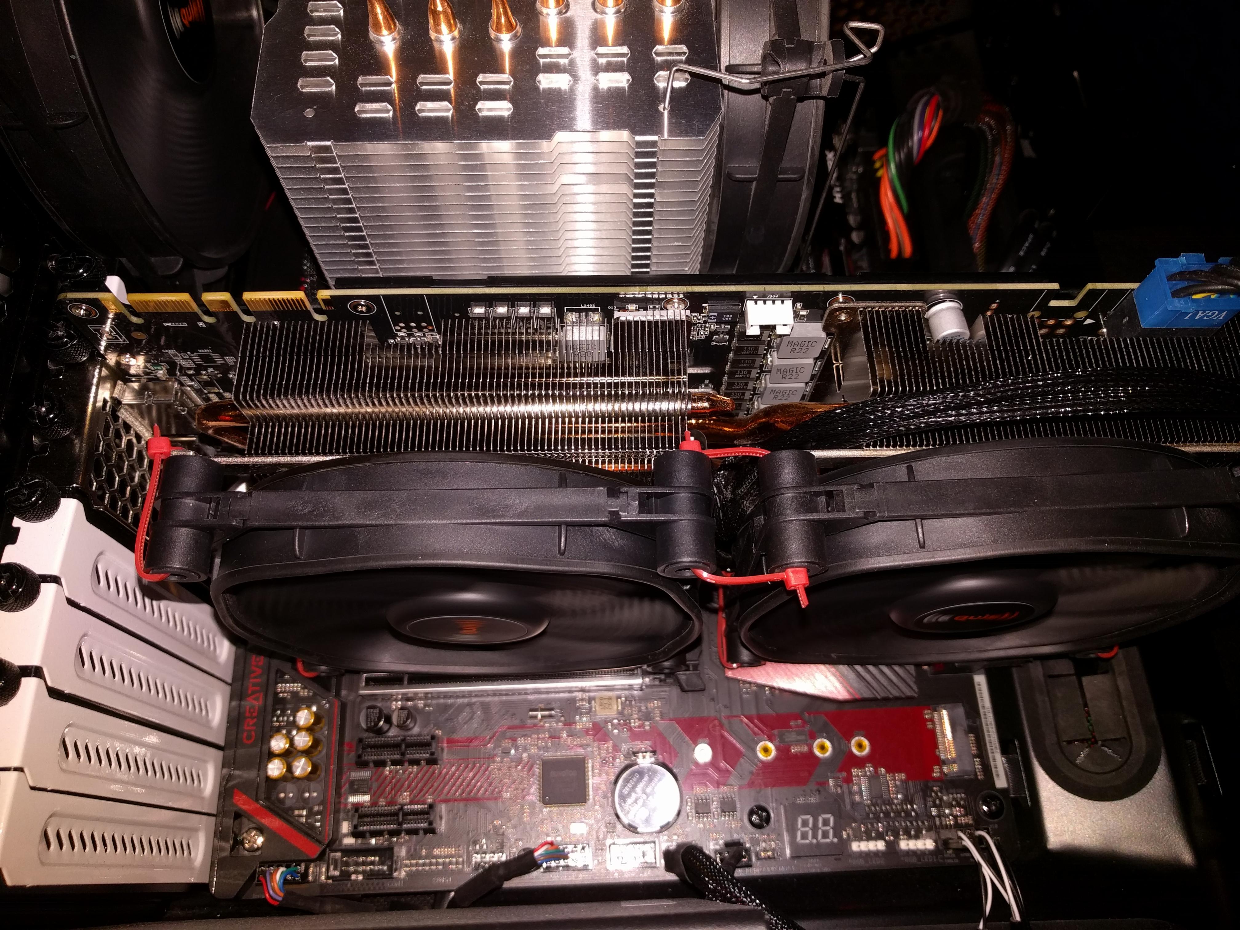 Ursprünglich nicht geplant ist der PC inzwischen im Wohnzimmer gelandet und müsste da einen Zacken ruhiger sein. Den CPU-Lüfter habe ich schon heruntergeregelt, am lautesten ist jetzt mit Abstand die Grafikkarte. Die sollte laut Mindfactory damals semi-passiv sein. Ist sie aber nicht.