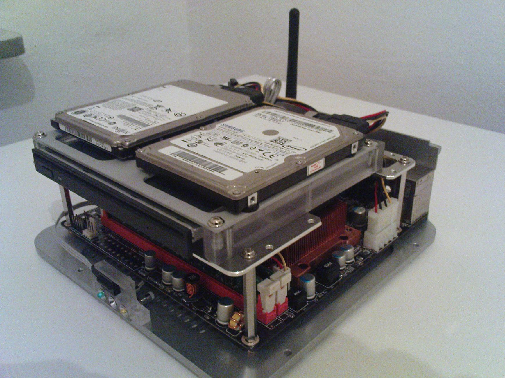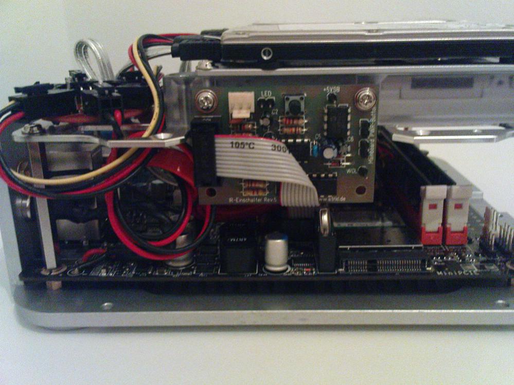 So gibt ein news, also das fräsen machen Sie nun pro Gehäuse für 270€, das denke ich ist ok, sind immerhin 80 € weniger wie gedacht. Das Material würde ich jedem schenken der sich an meinem Projekt beteiligt. Das sind mind. 60 € die man sparen kann. Das ganze sieht nun so aus, brauche 8 Personen die ein Mini Gehäuse haben möchten. Die Gehäuse werden in der Form so aussehen wie auf den Bildern. Der Unterschied liegt nur darin, das sie etwas größer werden, also 220x220x110 mm. Das hat den Grund, damit man jedes Mini ITX Board verbauen kann, die Höhe wegen eines Lüfters wenn man das Zotac X68 verbauen möchte mit einem Intel I5 2500T. Das Gehäuse bietet Platz für 2 Festplatten, die wie anders auf den Bildern an die Seite, links und rechts wandern. Das ganze System ist Modular aufgebaut. Auf der Grundplatte ist Platz für ein 120 mm Lüfter, der bei 800 Umdrehungen nicht hörbar ist. Dann kommt das Board und oben drauf das DVD/Bluray Laufwerk. Was jeder noch entscheiden kann ist ob er den An/Aus Schalter hinten wie auf den Bildern oder vorne wie 2 Abbildungen zeigen haben möchte, man kann den Bulkintaster mit blauer LED verbauen, oder was einem gefällt. Außerdem ist es möglich Ausfräsungen für eventuelle USB Frontanschlüsse zu machen. Auf dem Bild Nr.5 sieht man eine Platine um den Rechner per Fernbedienung zu steuern, die Kostet nur 20 €, wäre doch perfekt. So nun überlegt es euch und bei Fragen bitte melden.