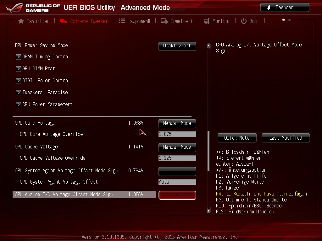 UEFI: Perfekt wie gewohnt bei Asus. Im Standard Mode wird die CPU mit ca. 4Ghz betrieben, aber mit normaler VCore 1,1Volt, im Prinzip perfekt.