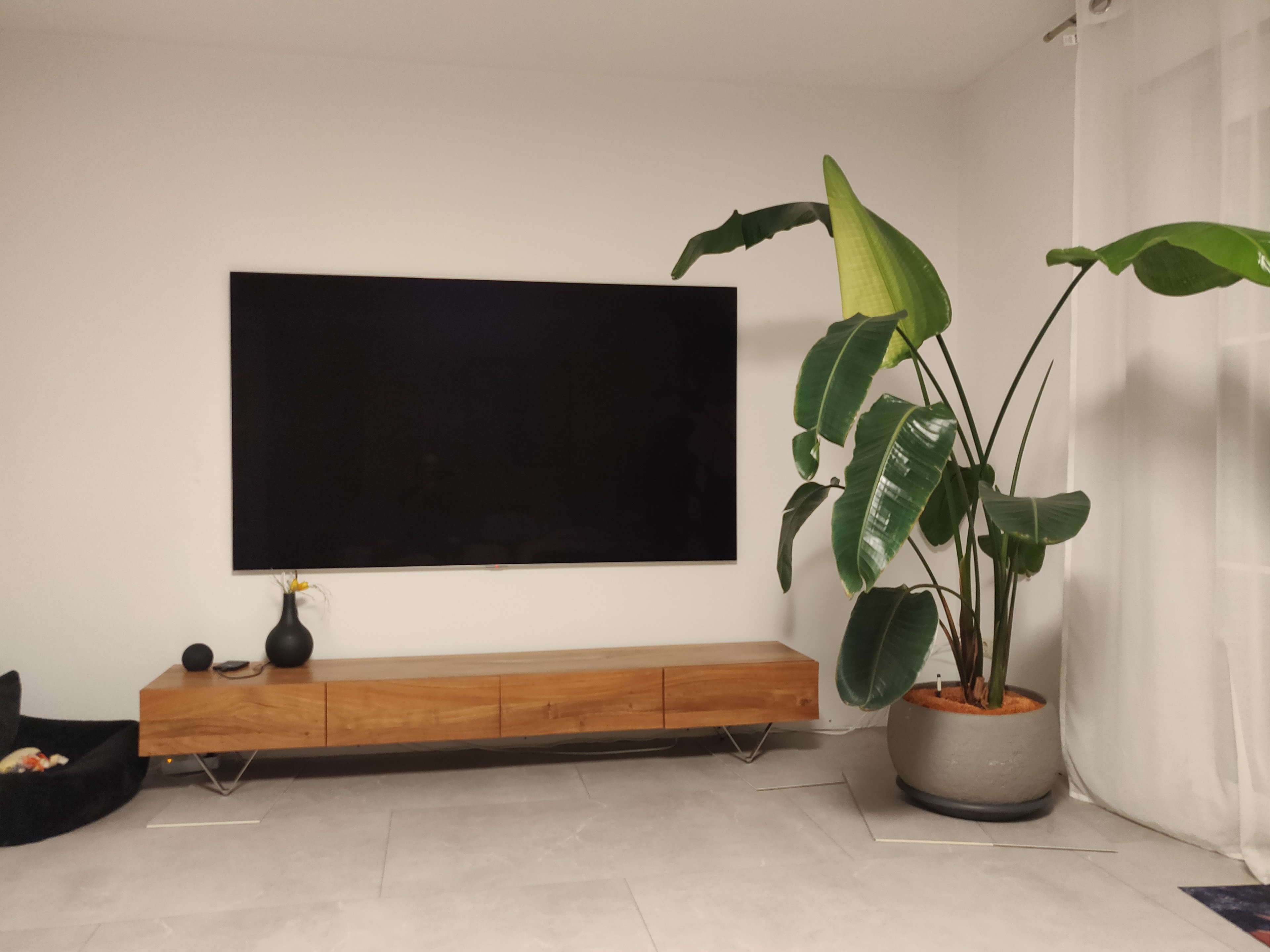 Wie kannst du das messen? Sieht mir nach den Standard 30-45cm Höhe vom Fußboden aus.Yiasmat schrieb:die Steck- und Antennendose beim unteren Blatt der Pflanze die an der Wand rechts vom TV zu hoch angebracht ist