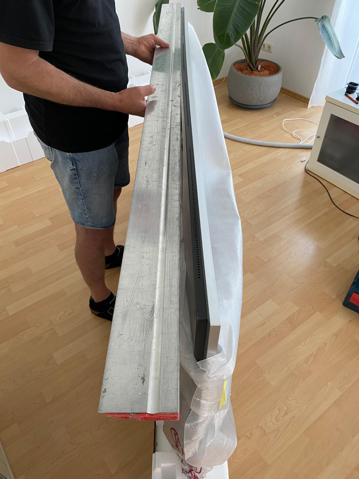 Einfach so an die Wand angebracht? Deckenhöhe ist hier auch circa 2,5 Meter. Unterm TV ist bei Mir ja auch noch der Center sowie das HiFi Rack mit der Technik