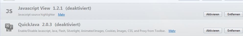 Hängt das auch irgendwie mit den Add Ons zusammen? Hier ein Ausschnitt davon: